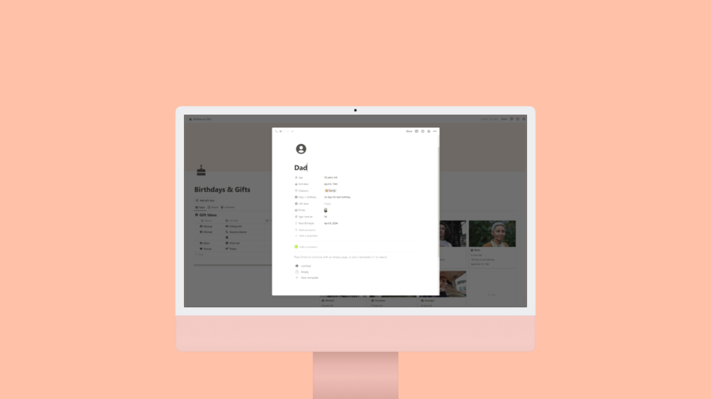 Birthdays & Gifts ⎥ Notion Template