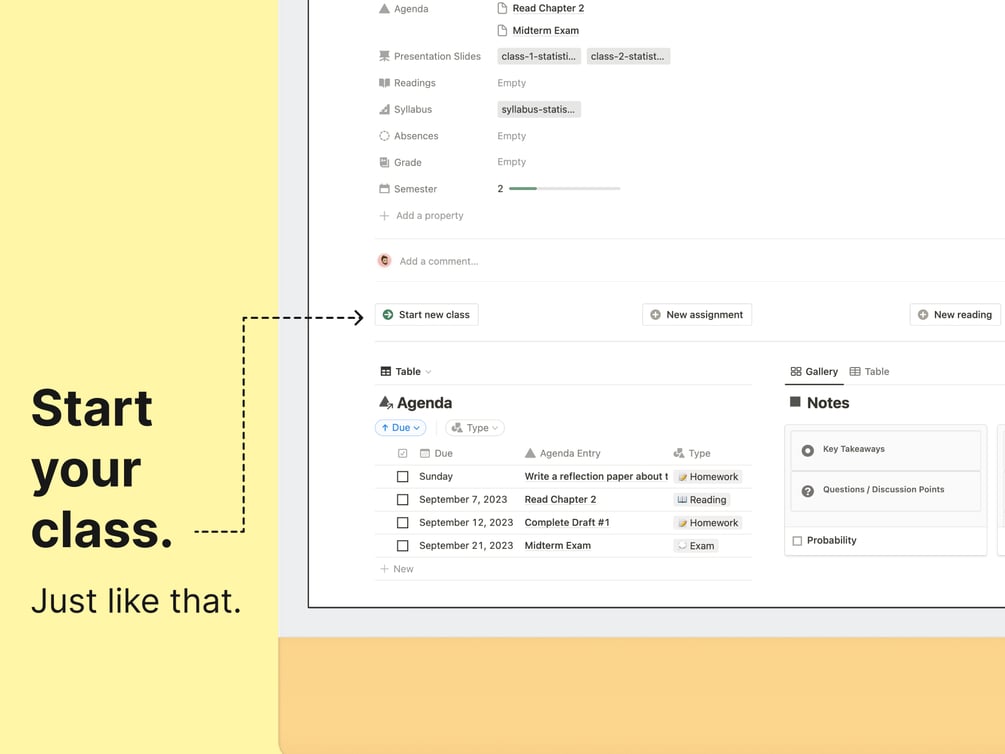 Never miss a deadline again! View your agenda in calendar or table format, or easily filter by examinations, readings, presentations, homework, and more. -