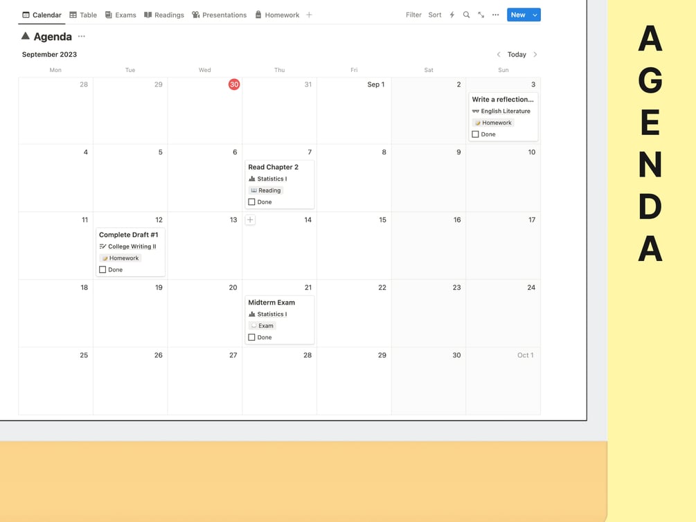 Never miss a deadline again! View your agenda in calendar or table format, or easily filter by examinations, readings, presentations, homework, and more. -